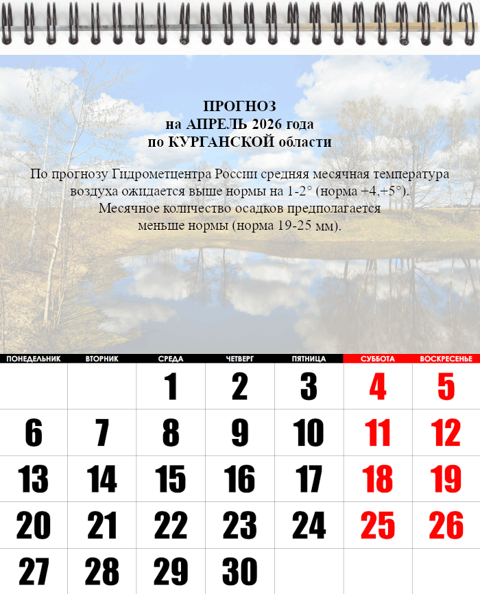 | Вероятностный прогноз температуры воздуха и осадков по Курганской области на вегетационный период (апрель – сентябрь) 2026 года (составлен Гидрометцентром РФ). |